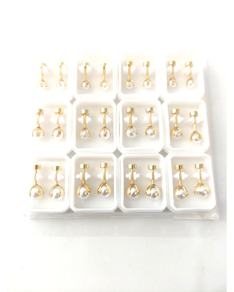 Pack de 12 pares de aros tope de perlas blancas en tamaño surtido