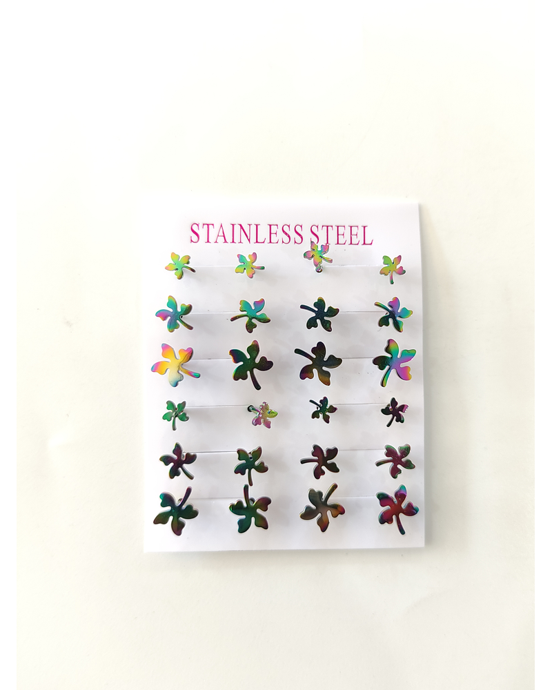 Pack de 12 pares de aros en acero tornasol de tope en forma de flor