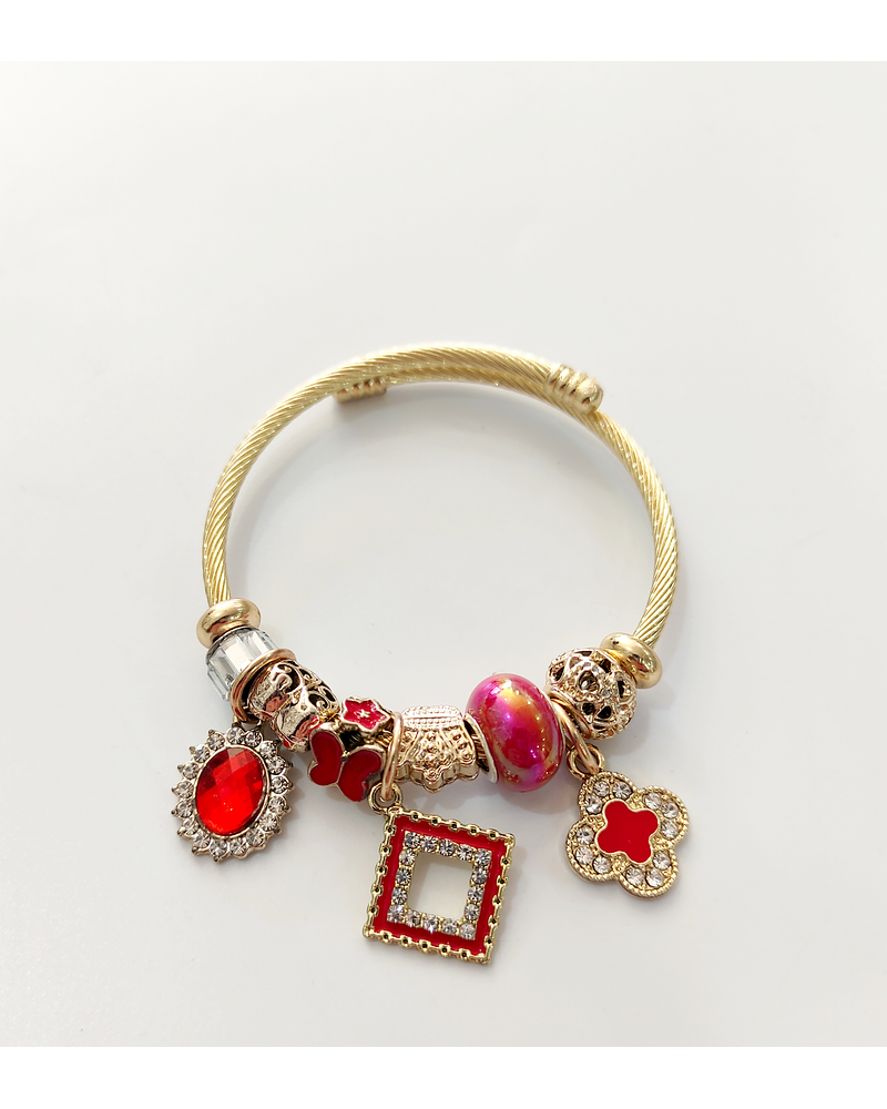 Pulsera ajustable con dije de retrato rojo dorada en acero