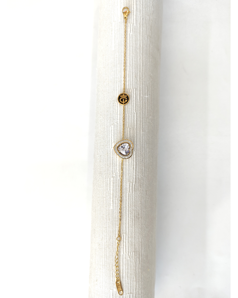 Pulsera delgada para Dama en acero dorado con punto de luz en forma de corazón con estrás
