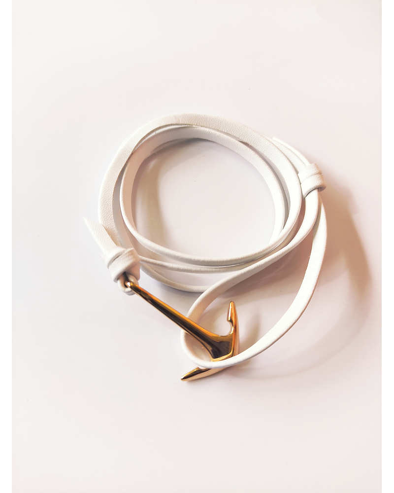 Pulsera unisex de ecocuero blanco con broche de ancla en acero